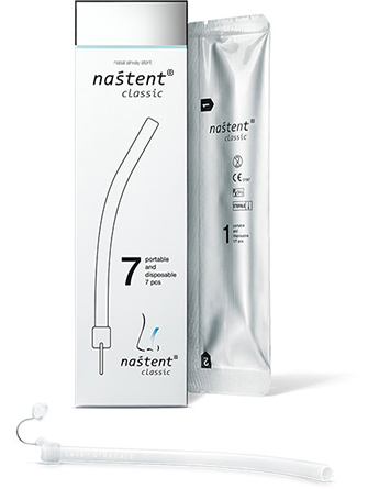 ナステントは柔軟性が高く、シリコーン樹脂を使用しているため鼻腔内でフィットし、優しく気道を開存します。
