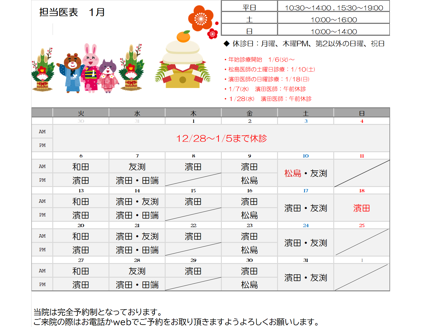 【12月・1月】担当医表と診療スケジュールのお知らせ