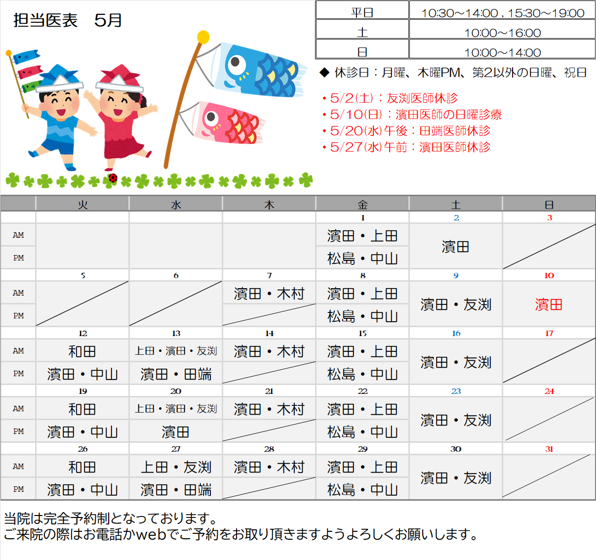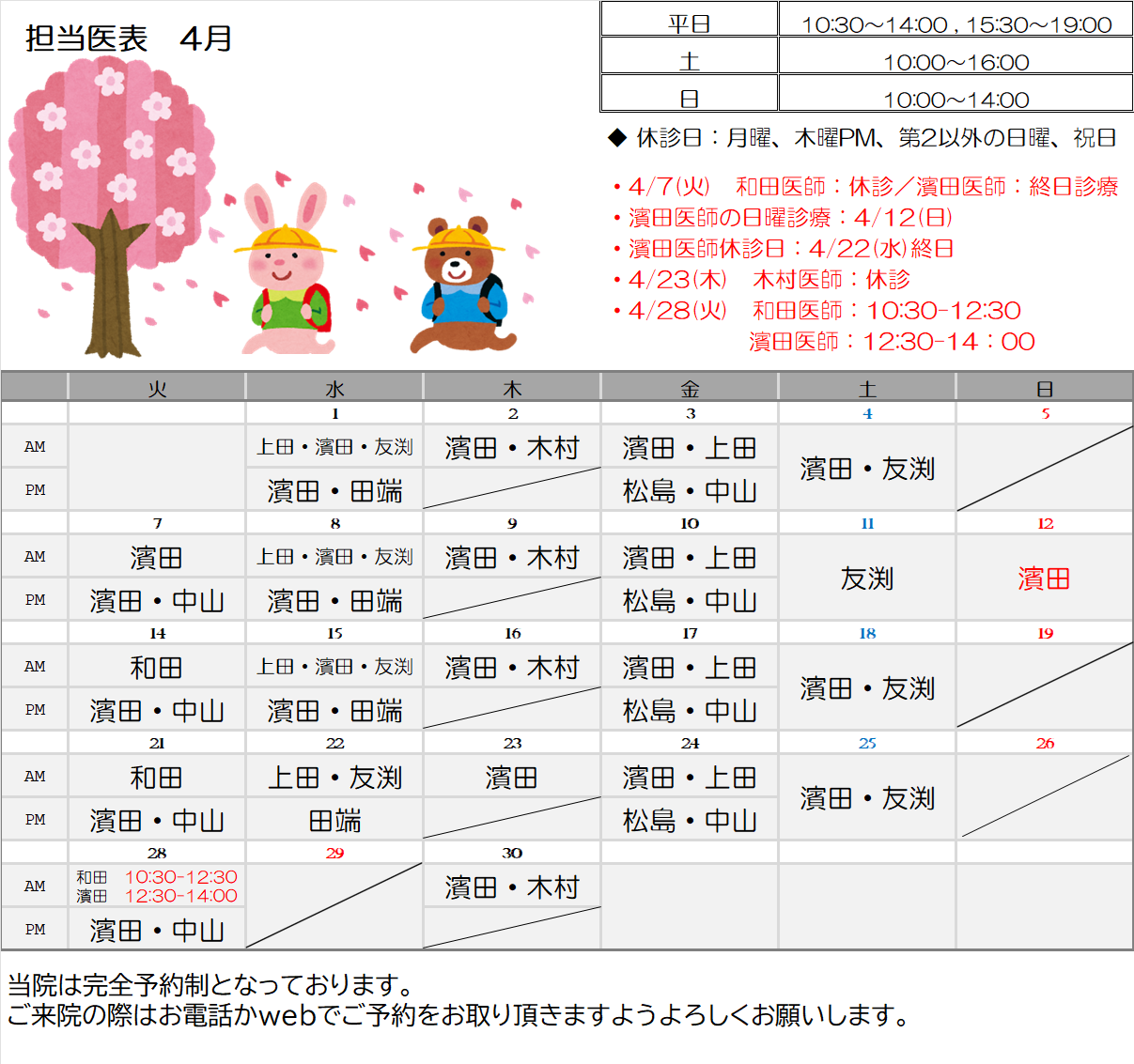 【4月・5月】担当医表と診療スケジュールのお知らせ