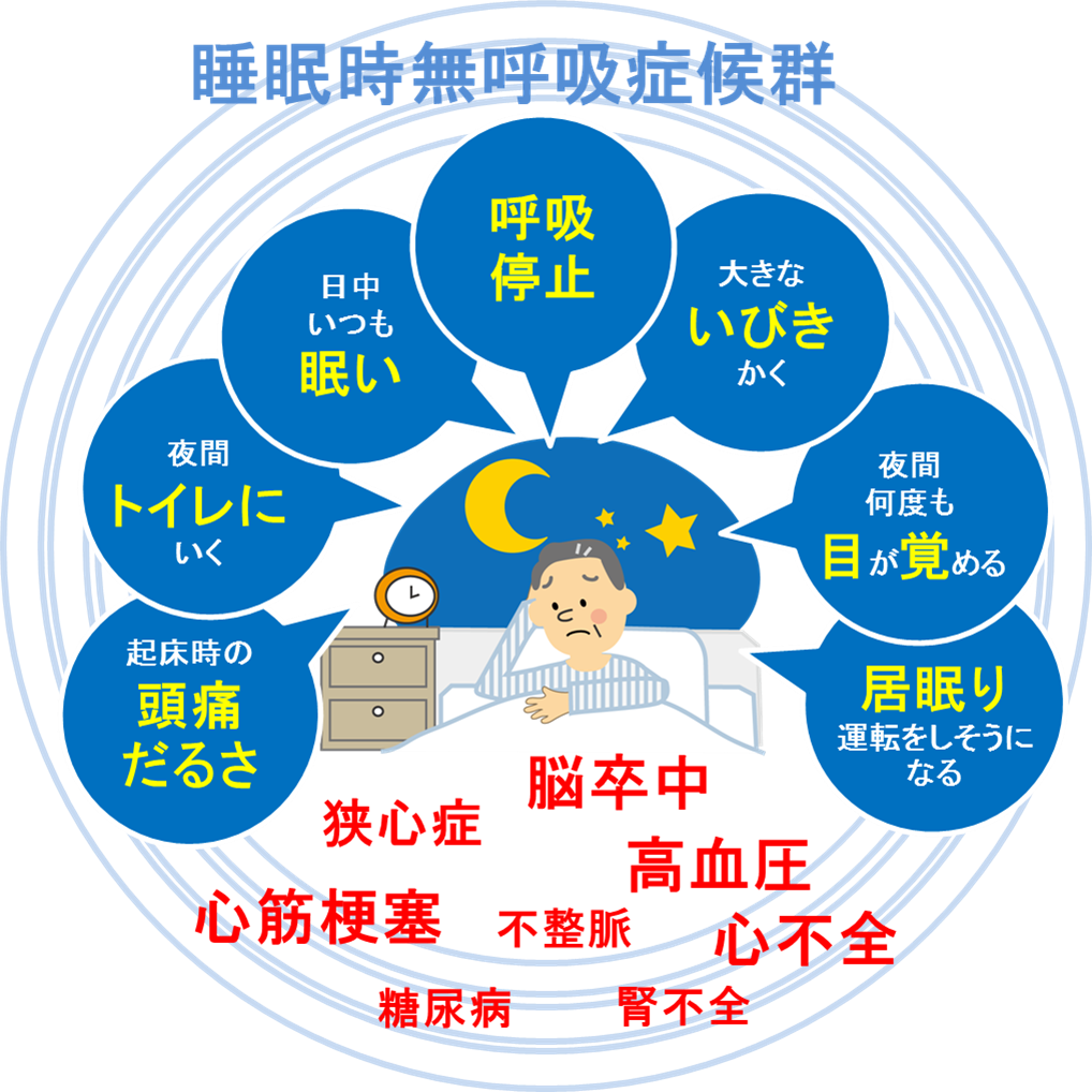 いびき・無呼吸の指摘、日中の強い眠気などご心配の方は、一度医師までご相談ください。